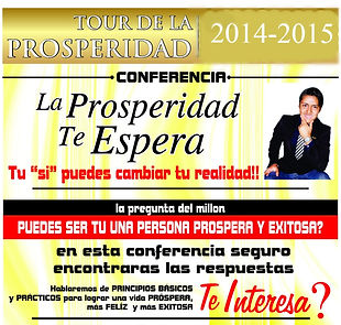 "El TOUR de la Prosperidad" está por visitar TU CIUDAD! Te invito a que estes pendiente de las fechas y sedes para que asistas y NO TE PIERDAS esta conferencia, en la que compartiré contigo información y conceptos básicos, prácticos y VALIOSOS, que de poner en práctica, sin duda, VAN A CAMBIAR TU VIDA!